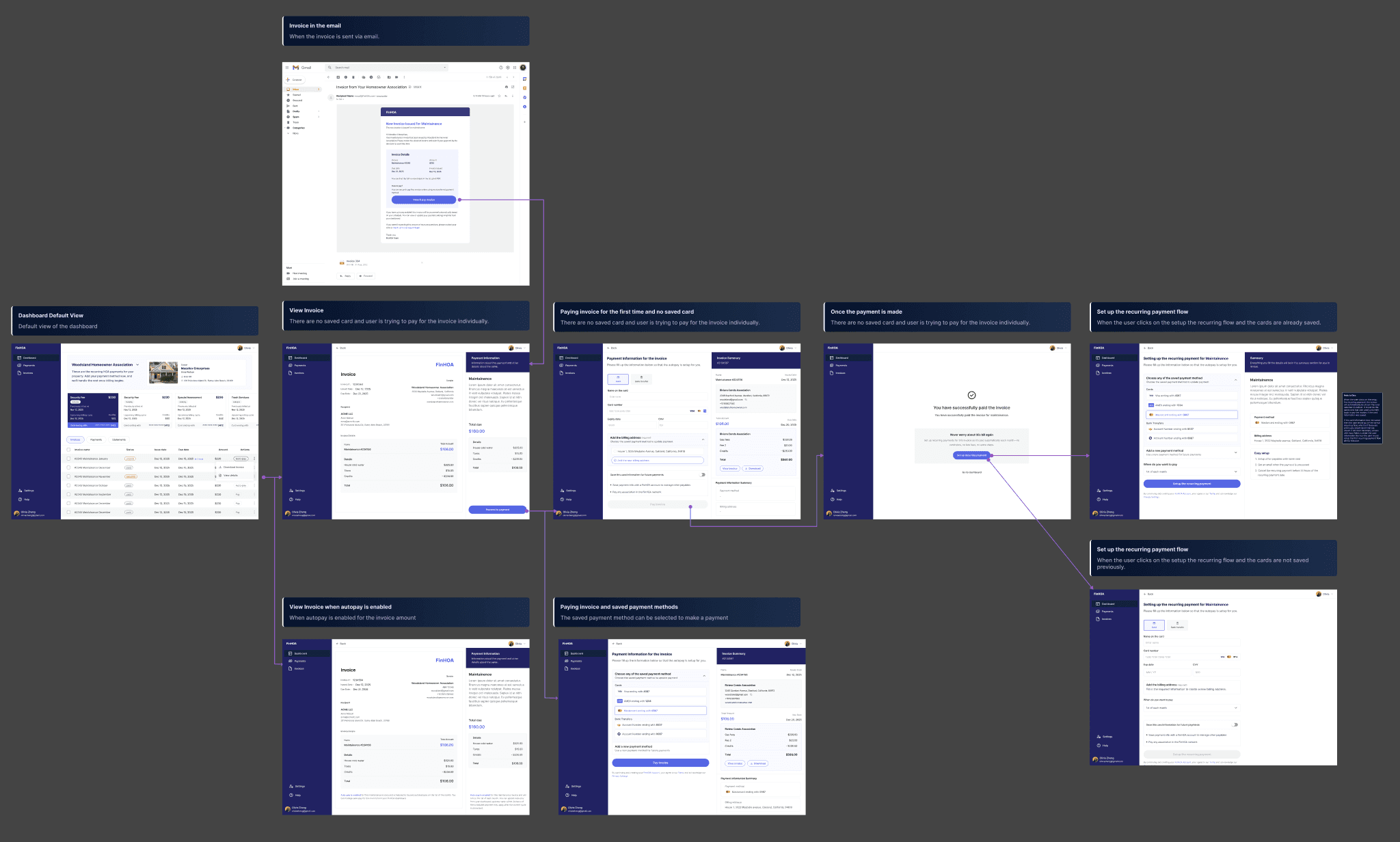 Instead of centering the experience around invoices, I reframed the system around recurring payment types (Maintenance, Parking, Trash, Security, etc.).