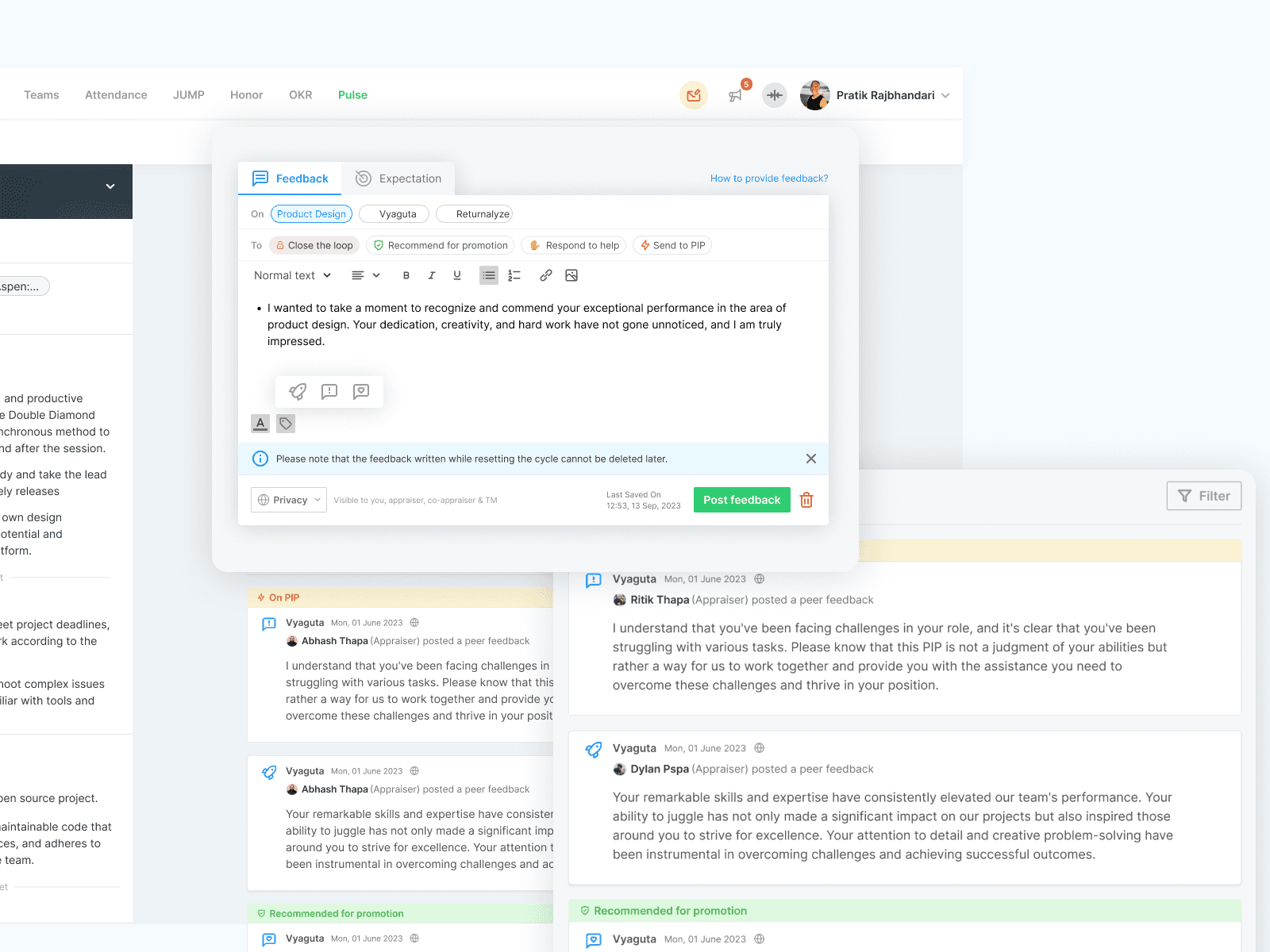 "The timeline made it easy to view the insights of my teammates and easy to refer them for the promotion" - Project Manager